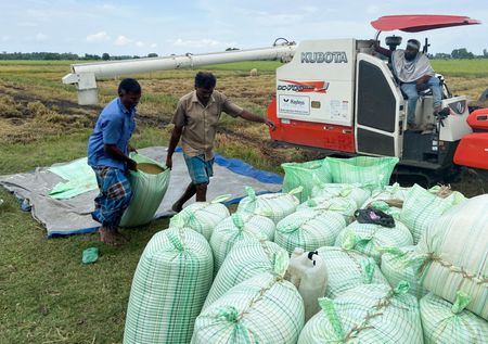 KILINOCHCHI/COLOMBO, Sri Lanka (Reuters) – Nallathambi Mahendran walked through his four acres of emerald green paddy fields in northern Sri Lanka’s Kilinochchi district, indicating the height the plants should have reached by now.