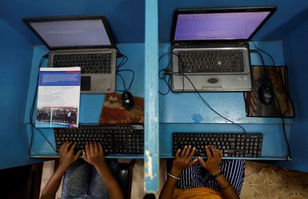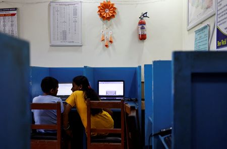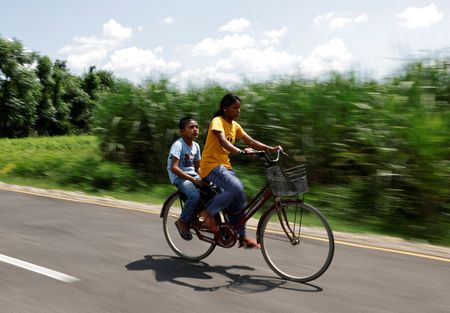“I feel good to go to school with mum,” said her son, Resham, 11, who is a grade behind his mother, spends lunch breaks with her and rides pillion as she bicycles to computer classes they attend at an institute nearby.
