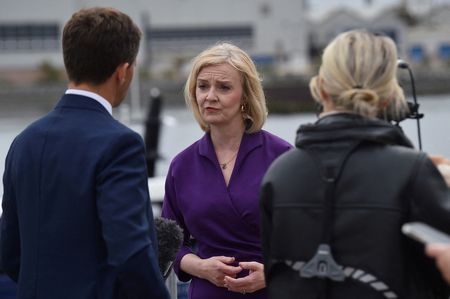 LONDON (Reuters) – Foreign Secretary Liz Truss remains far ahead of leadership rival Rishi Sunak in the race to become Britain’s next prime minister, a YouGov poll for Sky News showed on Thursday.