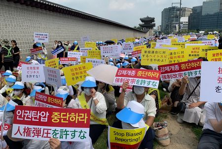 SEOUL (Reuters) – Thousands of Unification Church members gathered in Seoul on Thursday to protest what they call discriminatory and unfair Japanese media coverage of their church since former Prime Minister Shinzo Abe’s assassination.