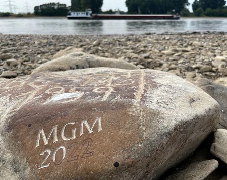 Many such stones have become visible along the banks of Germany’s largest river in recent weeks.