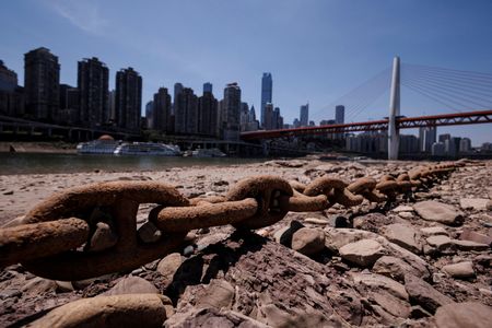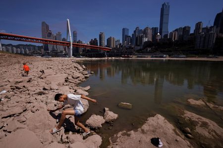 CHONGQING/SHANGHAI (Reuters) -Residents living near a tributary of the Yangtze river in the southwestern region of Chongqing clambered along the dry riverbed on Thursday amid an unprecedented drought across the region that could last another month.
