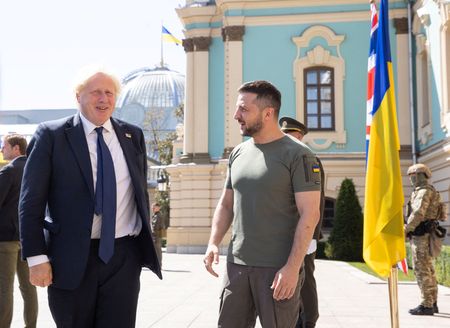 British Prime Minister Boris Johnson – one of Ukraine’s most vocal backers – turned up in Kyiv in person to appear at Zelenskiy’s side.
