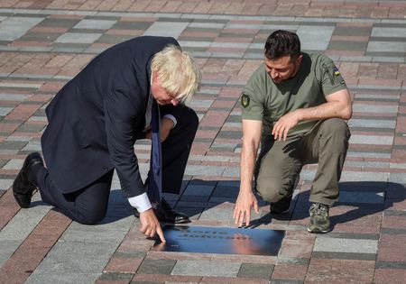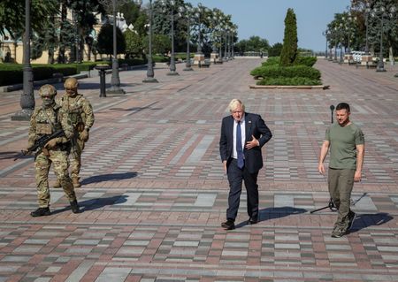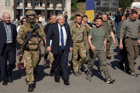 KYIV (Reuters) -British Prime Minister Boris Johnson lauded Ukraine for its “indomitable” resistance to Russia’s invasion during a surprise visit to Kyiv on Wednesday, and said now was not the time to promote a “flimsy plan for negotiation” with Moscow.