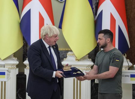 LONDON (Reuters) – British Prime Minister Boris Johnson met Ukrainian President Volodymyr Zelenskiy in Kyiv on Wednesday to mark the country’s independence day, promising a further package of military support to Ukraine in its conflict with Russia.
