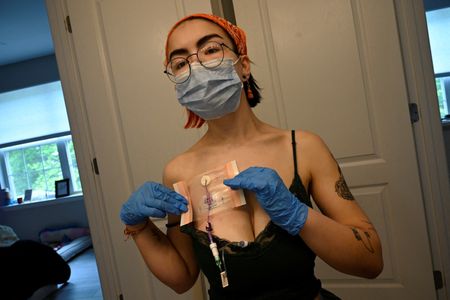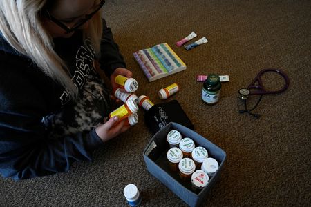 A Reuters reporter reviewed medical records and spoke with doctors for Spencer and Kelble who confirmed their conditions. A Reuters photographer accompanied them to doctor appointments and documented their daily routines of prepping multiple medications at home and filming videos for social media.