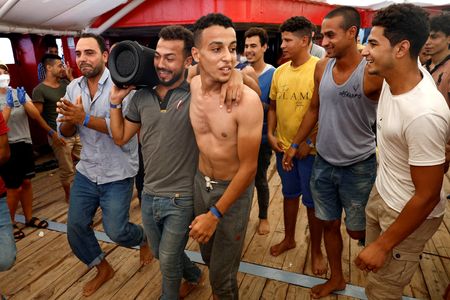 ABOARD THE OPEN ARMS UNO, off Sicily (Reuters) – Migrants aboard the Open Arms Uno rescue boat cheered, hugged crew members, and danced with joy on Friday as they were told they would be allowed to disembark at the Italian port of Messina after spending at least 10 days at sea.