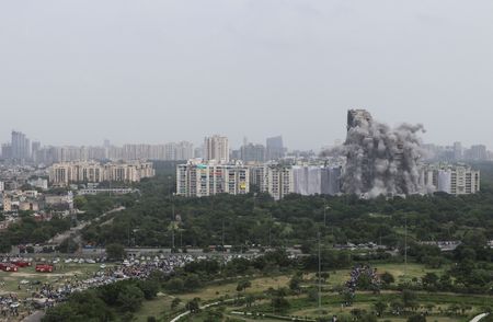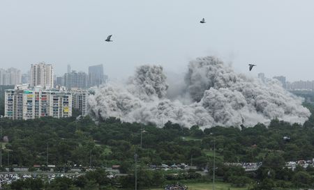 NOIDA, India (Reuters) -Indian authorities demolished two illegally constructed skyscrapers in a wide plume of dust debris on Sunday near the capital New Delhi, razing the tallest structures ever pulled down in the country in less than 10 seconds.