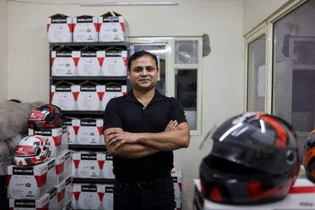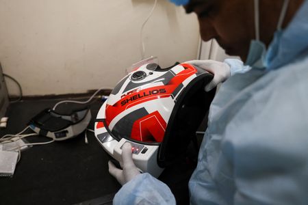 NEW DELHI (Reuters) – As India’s capital of New Delhi prepares for winter – and the accompanying season of acrid smog – the government is promoting a motorcycle helmet fitted with filters and a fan at the back that it says can remove 80% of pollutants.