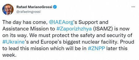 A mission from the International Atomic Energy Agency (IAEA) to the facility, captured by Russian forces in March but still run by Ukrainian staff, was due to arrive in Kyiv on Monday and start work in the coming days, Ukraine said.