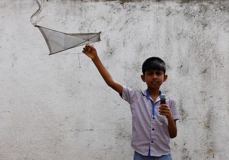 Oshada Fernando played with a home-made kite his uncle fashioned from bamboo scraps and shopping bags.