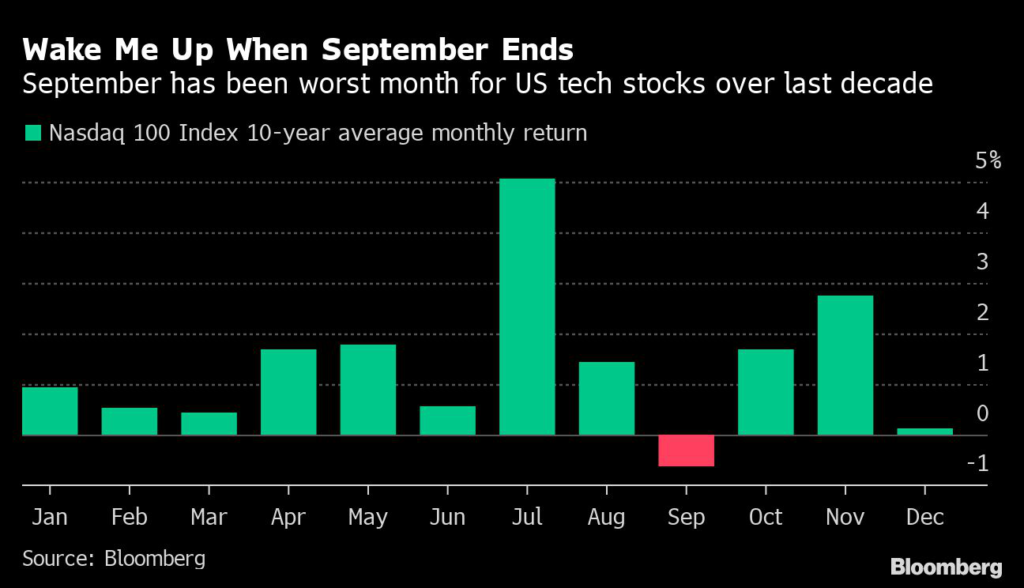 (Bloomberg) — The second half of August has been bruising for technology stocks, but those hoping for a respite from the declines shouldn’t relax just yet: September is just around the corner.