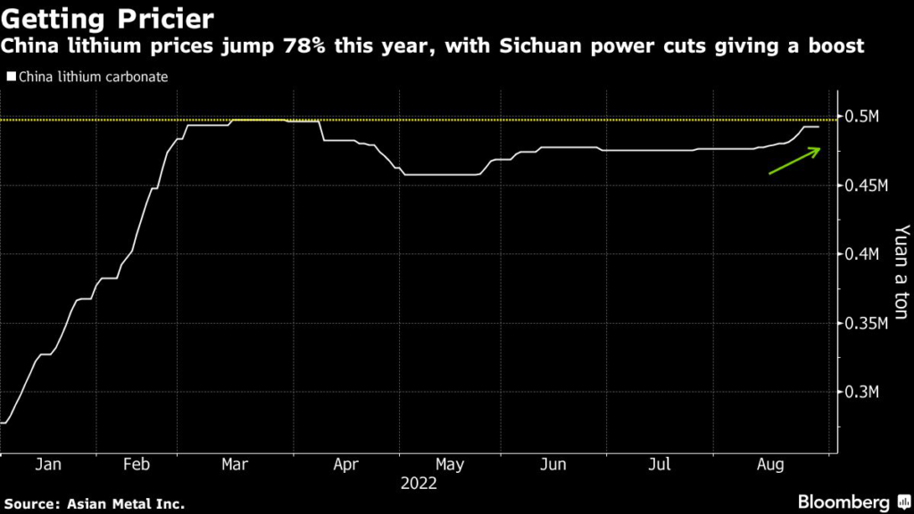 “Continued robust EV demand globally, and record-breaking heat and drought in the southwest of China are the key drivers for the market,” Benchmark Mineral Intelligence said in a note last week.