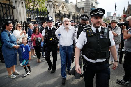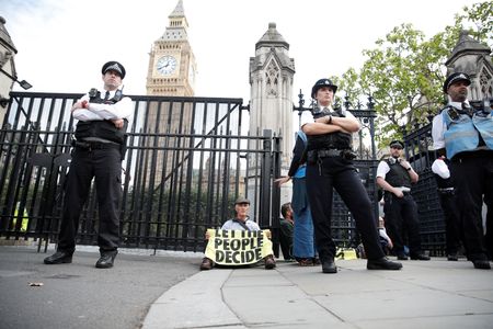 LONDON (Reuters) -London police arrested six individuals after the Extinction Rebellion environmental group staged a protest inside Britain’s parliament on Friday, while it was not in session, gluing themselves around the speaker’s chair.
