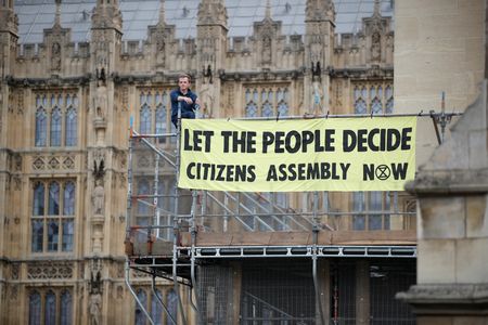 Extinction Rebellion had posted a photo on Twitter showing five people inside the House of Commons debating chamber holding banners reading “Let the people decide” and “Citizens’ Assembly now”.