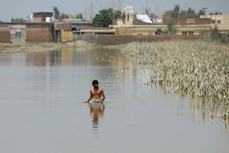 KARACHI, Pakistan (Reuters) – The toll from cataclysmic floods in Pakistan continued to climb on Saturday with 57 more deaths, 25 of them children, as the country grapples with a relief and rescue operation of near unprecedented scale.