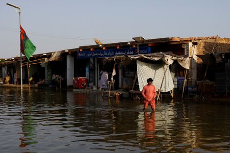 SEHWAN, Pakistan (Reuters) -Parts of Pakistan seemed “like a sea”, Prime Minister Shehbaz Sharif said on Wednesday, after visiting some of the flood-hit areas that cover as much as a third of the South Asian nation, where 18 more deaths took the toll from days of rain to 1,343.