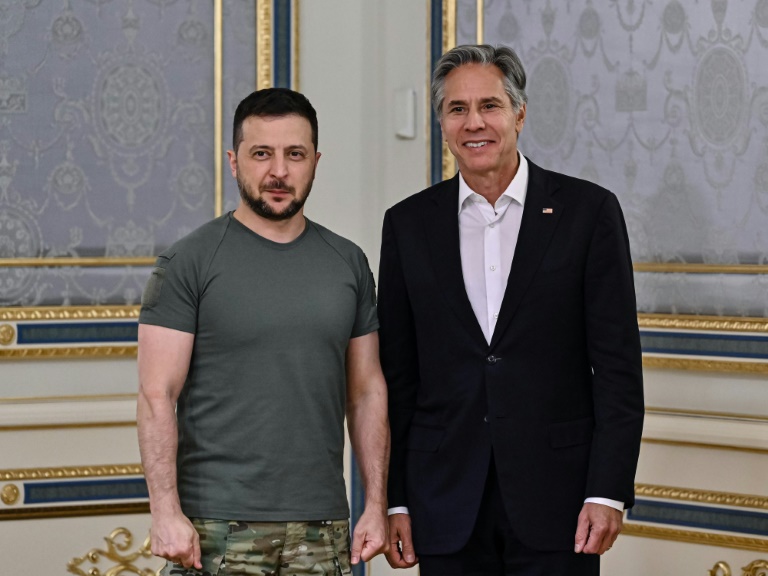 Zelensky, clad in his now signature military-green T-shirt, presented a state award to Blinken as he voiced gratitude for the “enormous support” of the United States.
