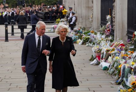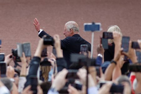 LONDON (Reuters) – Britain’s King Charles shook hands with dozens of members of the public outside Buckingham Palace on Friday, as emotional well-wishers snapped pictures and greeted the new monarch following the death of his mother Queen Elizabeth on Thursday.