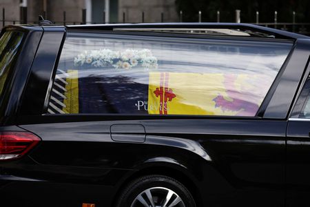 EDINBURGH, Scotland (Reuters) -Queen Elizabeth’s coffin arrived in Edinburgh on Sunday after a six-hour journey from her summer home in the Scottish Highlands, past tens of thousands of mourners lining the route, many in sombre silence, some applauding and others in tears.