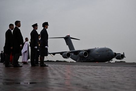 LONDON (Reuters) – A plane carrying the body of Queen Elizabeth landed at a royal airforce base in west London on Tuesday, as the coffin heads to Buckingham Palace before lying in state in parliament from Wednesday.