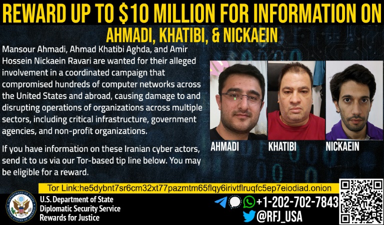 But a separate US Treasury announcement of sanctions said the three were part of a larger hacking group tied to Iran’s powerful Islamic Revolutionary Guard Corps (IRGC), and the US State Department has offered a $10 million reward for information on them.