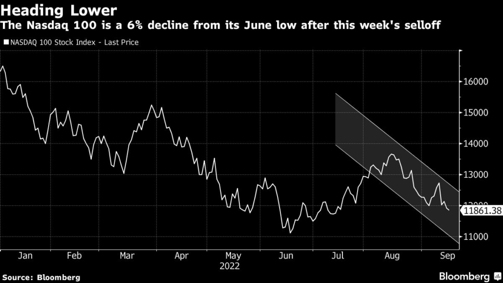 Nine Nasdaq 100 stocks made new lows on Friday, the most since the first week of July, according to data compiled by Bloomberg.