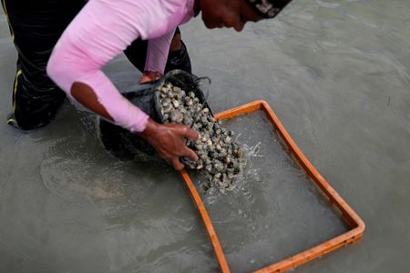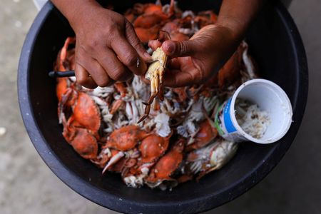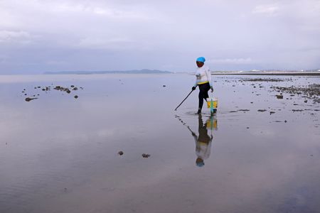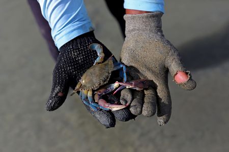 In the afternoons, women gather to scrape meat from crabs and clams caught that day, while others weave traditional straw baskets.