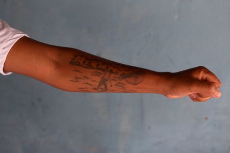 to fish in the crystalline waters surrounding his community of Bananeiras, has proudly memorialized their tradition with a tattoo on his left arm of his grandfather casting a net.
