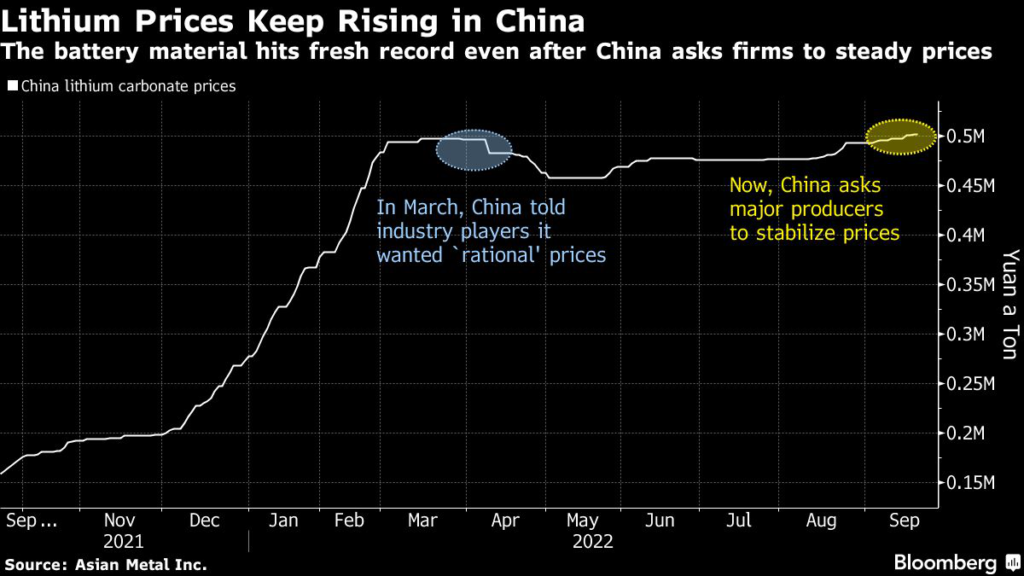 In China’s meeting with the lithium industry last week, authorities asked major firms to ensure prices don’t hugely deviate from production costs and urged consumers to strike long-term agreements.