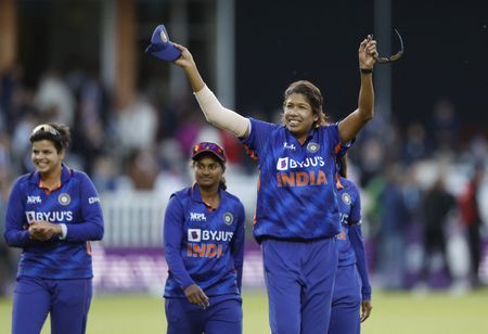 LONDON (Reuters) -India’s Jhulan Goswami, the leading wicket-taker in women’s ODIs, bowed out of international cricket on Saturday at Lord’s after bowling her 10,000th ball in one-day matches, as her side completed a 3-0 series win over England with a controversial final wicket.