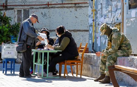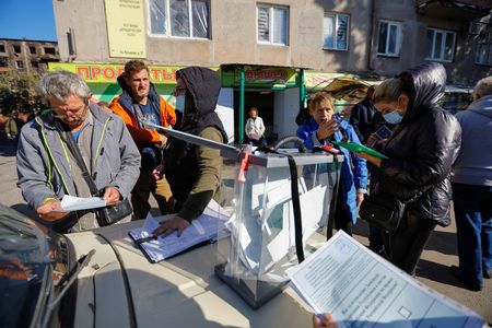 Votes in four eastern Ukrainian regions, aimed at annexing territory Russia has taken by force mostly since its invasion in February, were staged for a third day on Sunday.