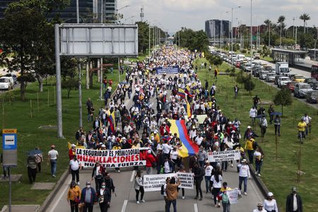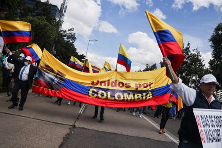 BOGOTA (Reuters) – Thousands of protesters marched on Monday against economic and social reforms proposed by Colombian leftist President Gustavo Petro – which he says will fight inequality – just 50 days after he took office.