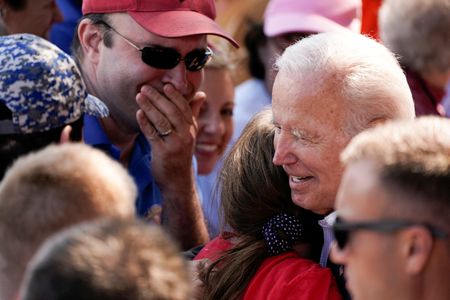 WASHINGTON (Reuters) – U.S. President Joe Biden’s public approval rating edged higher this week, though he remains deeply unpopular, with just six weeks to go before the Nov.