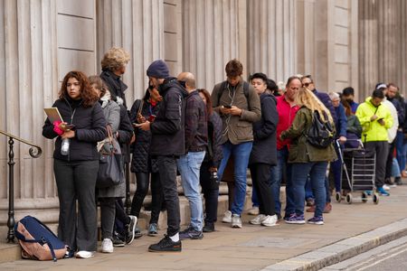 LONDON (Reuters) – Britain’s economy remained below its pre-pandemic peak, according to data published on Friday that left the country further adrift of other Group of Seven nations and underscored the challenge facing new Prime Minister Liz Truss.
