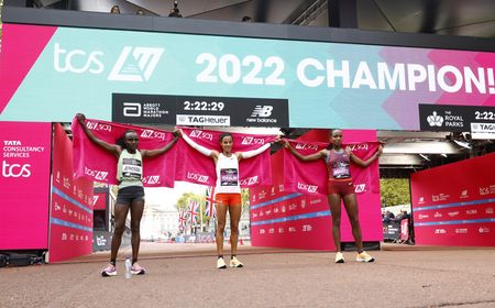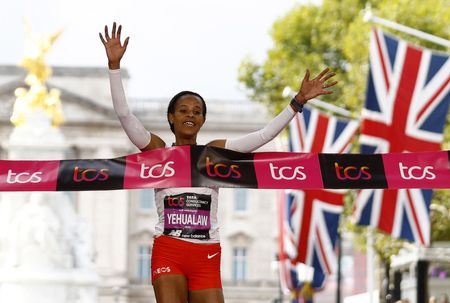 LONDON (Reuters) -Kenyan Amos Kipruto won his first London Marathon title on Sunday and Ethiopia’s Yalemzerf Yehualaw stormed to victory in the women’s race ahead of last year’s winner Joyciline Jepkosgei.