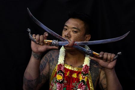 PHUKET, Thailand (Reuters) – Worshippers on Thailand’s Phuket island have celebrated a nine-day Taoist festival, with many piercing their faces with metal spikes and walking on hot coals to show devotion to deities.