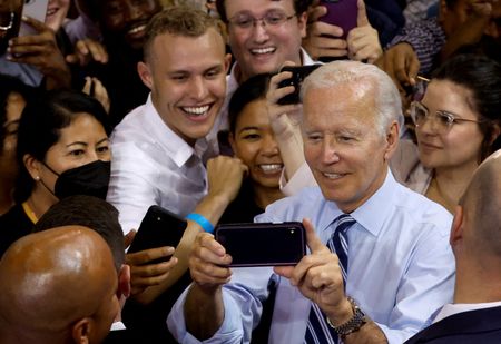 WASHINGTON (Reuters) – U.S. President Joe Biden’s public approval rating edged lower this week and was close to the lowest level of his presidency, with just five weeks to go before the Nov.