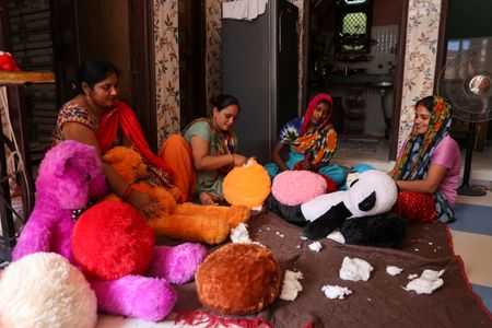 NEW DELHI (Reuters) – Sitting on the floor of a house on the outskirts of New Delhi, women smile and chat as they fill brightly coloured toy bears with white stuffing made from a product more commonly found in a trash can.