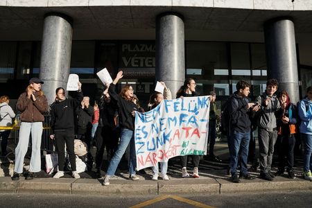 BUDAPEST (Reuters) – At least 10,000 Hungarian students, teachers and parents blocked a Budapest bridge before filling a main square outside parliament on Wednesday in support of teachers fighting for higher wages and teachers sacked for protesting.
