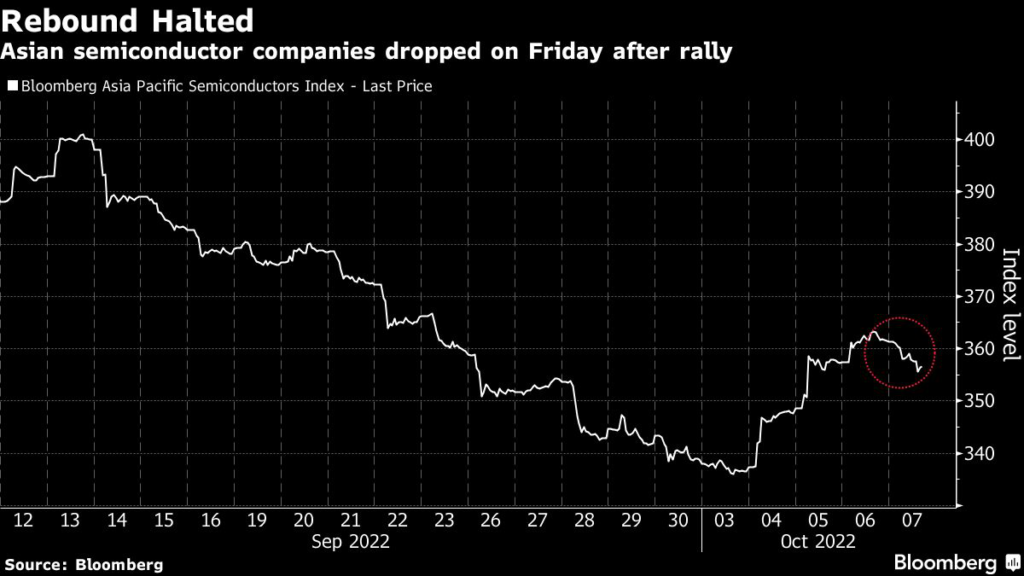 The Bloomberg Asia Pacific Semiconductors Index sank 1.6% Friday after gaining 6.7% earlier in the week.