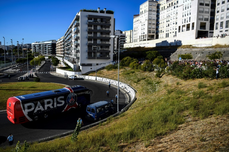 PSG's bus arrives at the Luz stadium in Lisbon in August 2020