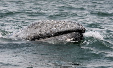 Gray whales, one of the largest animals on Earth weighing up to 41 tons and reaching lengths of 49 feet (15 meters), are known for their visible annual 10,000-mile (16,000-km) migration between feeding grounds in the Arctic and breeding grounds in Baja Mexico.