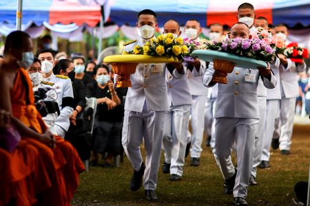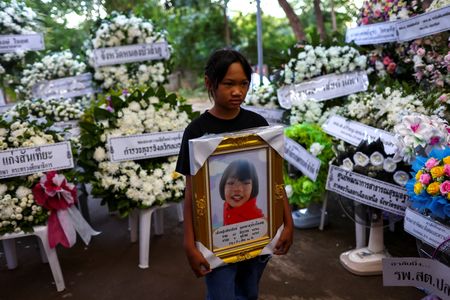 UTHAI SAWAN, Thailand (Reuters) -Hundreds gathered in temples in northeast Thailand on Saturday, offering candles, toys and prayers to mark the lives of more than 30 mostly child victims of a gun and knife rampage that shocked the world.