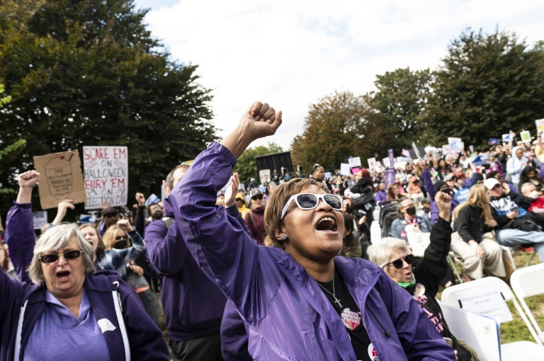 Demonstrators took to the streets of Washington (seen here) and several other US cities on October 8, 2022 in support of abortion rights