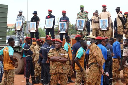 OUAGADOUGOU (Reuters) – Thousands of mourners gathered in Burkina Faso’s capital on Saturday for the funeral of 27 soldiers killed in an ambush last month that triggered the country’s second coup this year led by a military unit fed up with rampant insecurity.