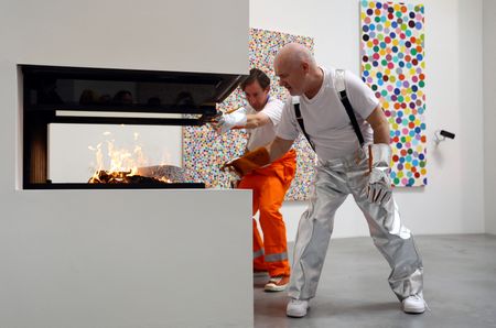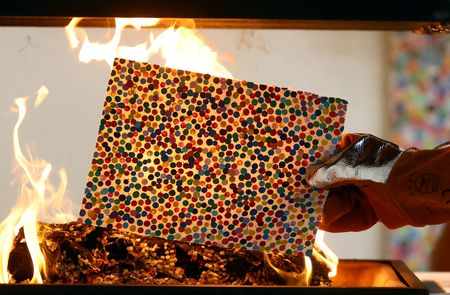 Asked how he felt to be burning the works, Hirst said: “It feels good, better than I expected.”