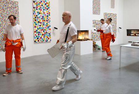 LONDON (Reuters) – Britain’s Damien Hirst started burning hundreds of his artworks on Tuesday after collectors chose to keep their non-fungible tokens (NFTs), blockchain-based assets representing their digital images, instead.
