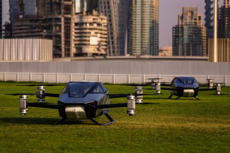The X2 is a two-seater electric vertical take-off and landing (eVTOL) aircraft that is lifted by eight propellers – two at each corner of the vehicle.