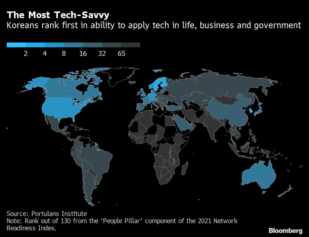They rank No. 1 in the world when it comes to the enthusiasm and ability to apply tech in everyday life, businesses and government, according to the Portulans Institute, a Washington-based thinktank.